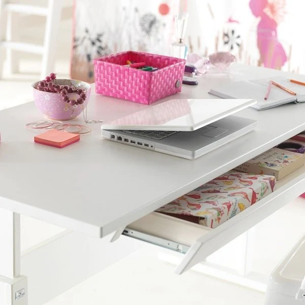 Un bureau en bois massif qui grandit avec l’enfant. La hauteur est réglable de 56 à 78 cm.