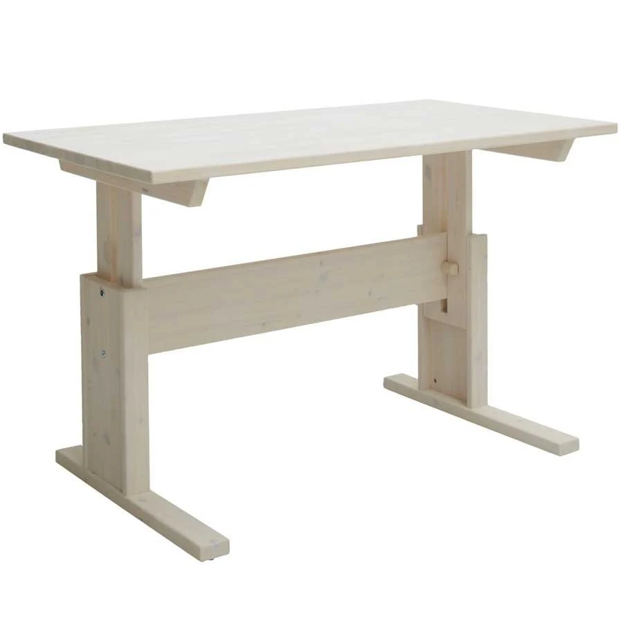 Un bureau en bois massif qui grandit avec l’enfant. La hauteur est réglable de 56 à 78 cm.