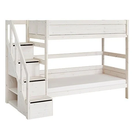 Le lit superposé classique offre un espace de couchage pour 2 personnes tel que nous le connaissons. Les escaliers sur le côté peuvent être attachés à gauche ou à droite et offrent beaucoup d’espace de rangement en plus d’un endroit pour grimper.