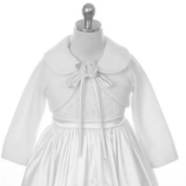 Cet élégant boléro Anna est très doux et agréable à porter. Il est fermé en haut par un bouton et est joliment décoré d’une application florale. Couleur: blancNuméro d’article : KD-216