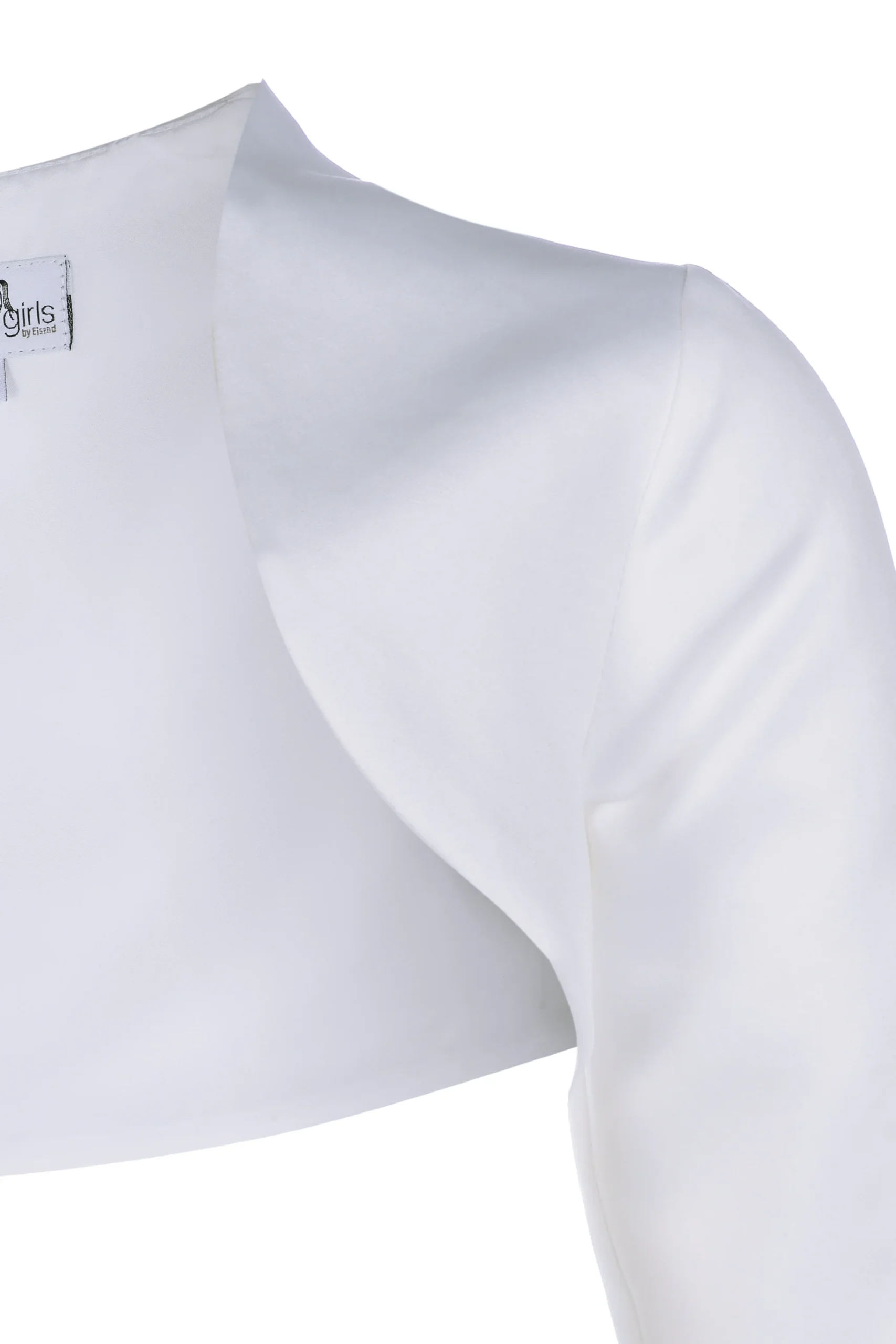 Boléro doublé satin – blanc Elégant boléro festif, 100% polyester, au chic unique et merveilleusement agréable à porter. Un accessoire parfait d’une garde-robe festive. boléro enfant matériau souple patte de boutonnage Col ras du cou Manches longues 100% polyester Numéro d’article 354104 Couleur 10 blanc
