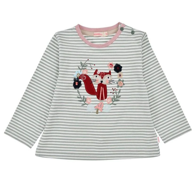 T-shirt bébé Bondi à manches longues, à rayures et avec un joli motif renard. Parfait pour les petites filles, confortable et de haute qualité. Donnez à votre enfant un look ludique avec ce joli t-shirt.