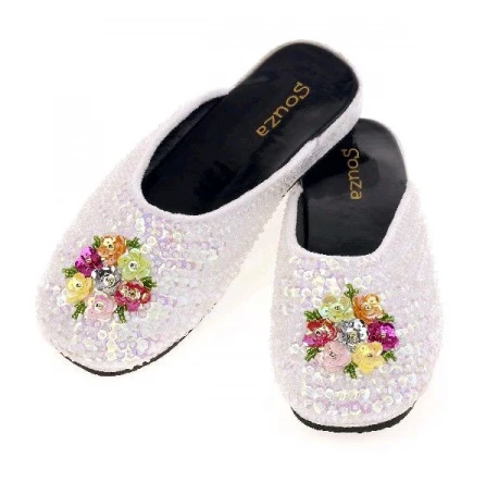 Ces charmantes pantoufles Wendela sont ornées de nombreux sequins argentés et roses et d’une douce application de fleurs.