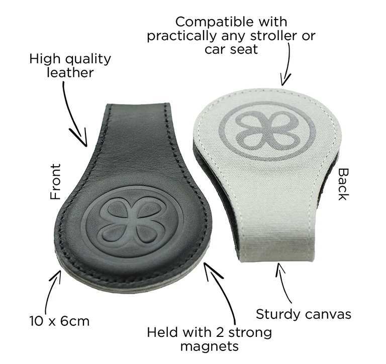 Les Clips Cloby pratiques sont multifonctionnels et aident à de nombreuses occasions ! Le clip contient 2 aimants et est recouvert de cuir de haute qualité d’un côté et de toile solide de l’autre. Le clip est réversible. Ils attachent des jouets, des couvertures ou des petits sacs à la poussette ou au siège auto, fixent la couche comme doublure ou bavoir, etc.
