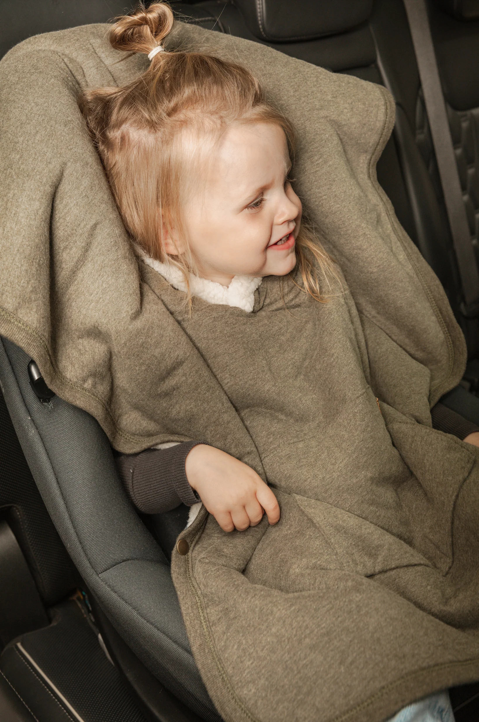 Le poncho est également un compagnon de voyage idéal. Il est parfait pour une utilisation dans un siège auto, où les vestes épaisses ne doivent généralement pas être portées sous les ceintures de sécurité. Le poncho peut être porté confortablement sur les bretelles. Il n’a aucun impact sur les performances du siège auto et garantit le confort et la sécurité de votre enfant pendant son voyage.