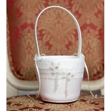 Ce ravissant panier Jasmine en blanc cassé ou blanc avec une ravissante application florale et deux jolis nœuds est l’accessoire parfait pour une demoiselle d’honneur ou toute autre occasion festive.