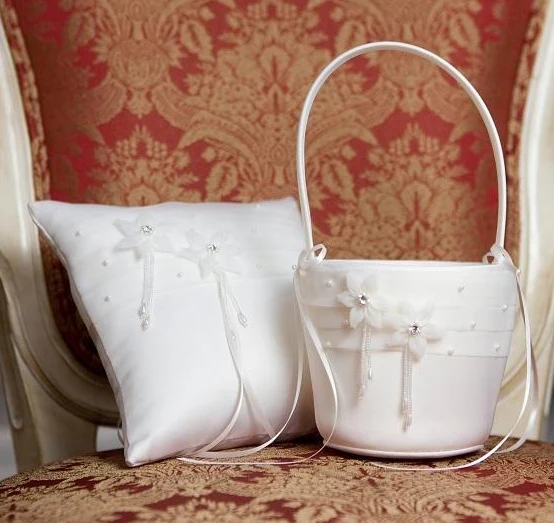 Ce ravissant panier Jasmine en blanc cassé ou blanc avec une ravissante application florale et deux jolis nœuds est l’accessoire parfait pour une demoiselle d’honneur ou toute autre occasion festive. Se marie parfaitement avec le coussin pour alliances Jasmine. Numéro d’article : BA009