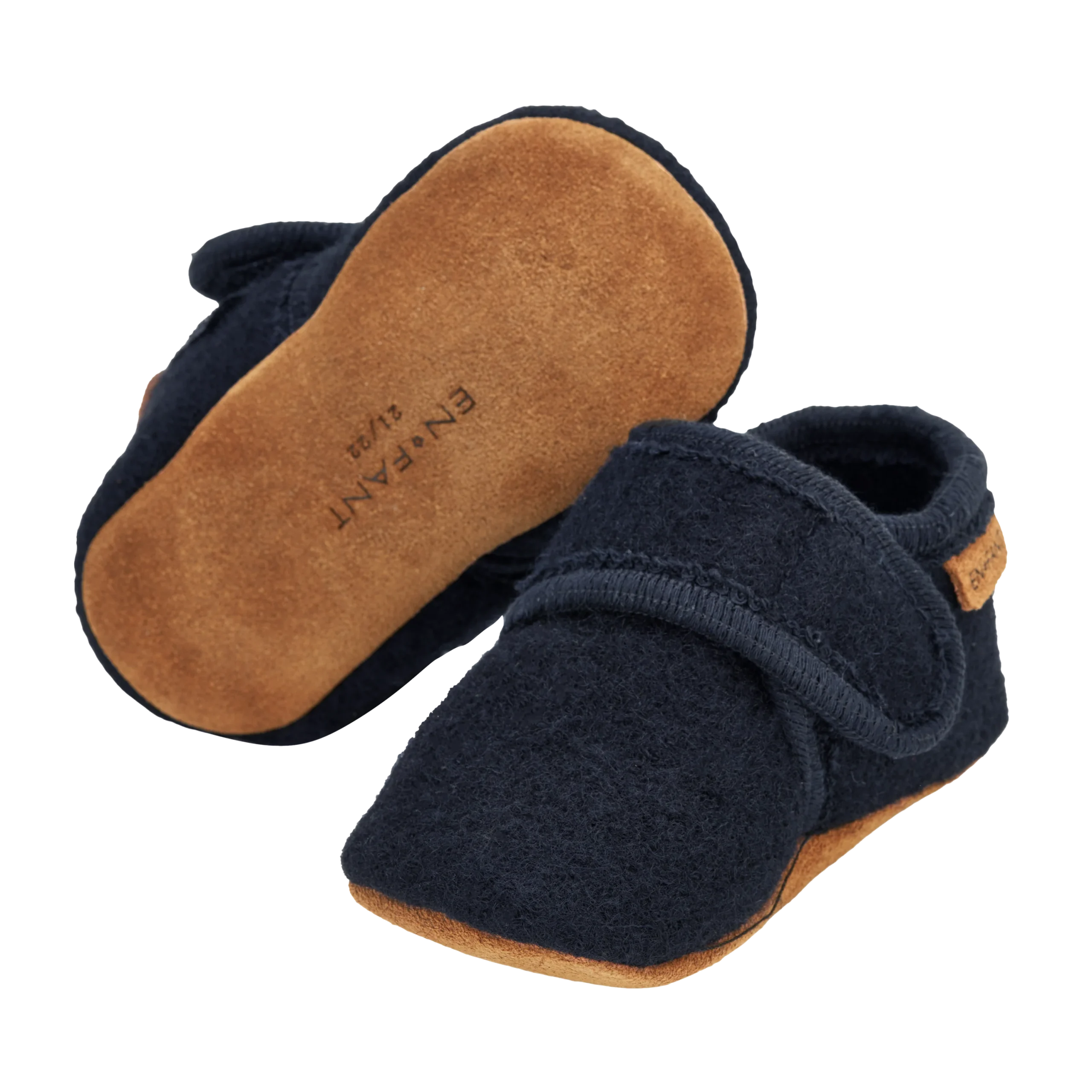 Ces chaussures bébé de haute qualité signées En Fant sont fabriquées en 100 % laine mérinos et dotées d’un revers replié à la cheville pour un maintien optimal. Leur semelle robuste en cuir suédé résistant assure stabilité et durabilité. Idéales comme chaussons, elles offrent un confort optimal aux pieds délicats de bébé.