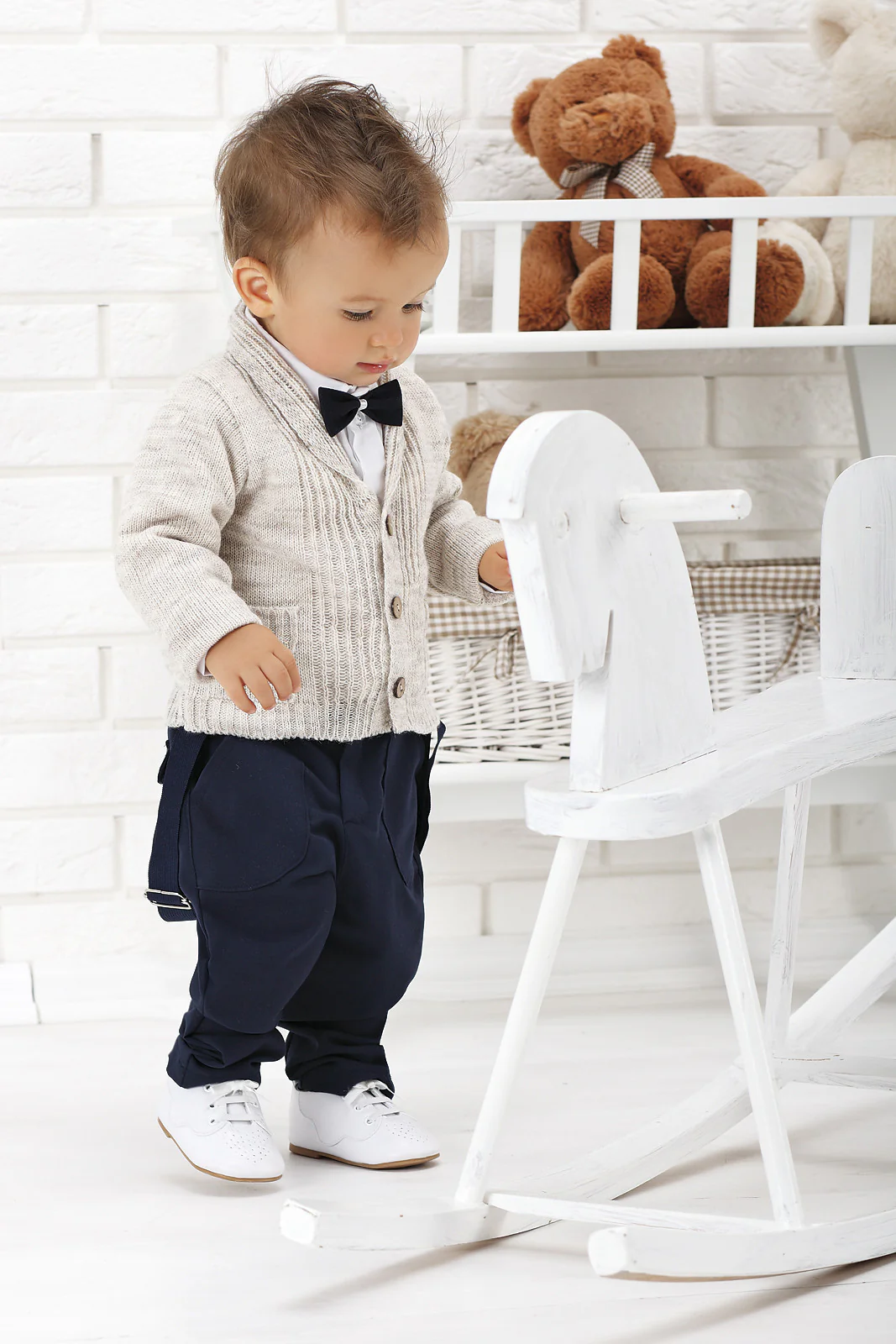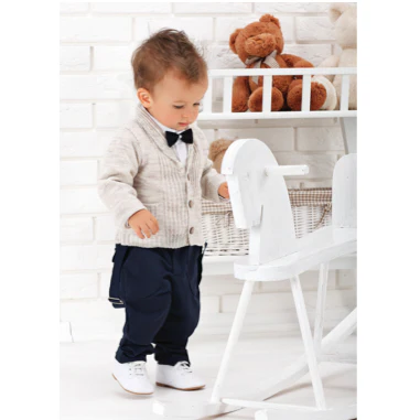 Ce charmant costume très élégant se compose d’un pantalon, d’une chemise en coton, d’un nœud papillon, d’une veste et de bretelles. Il impressionne par la grande coupe. La veste et le pantalon sont en matière douce.