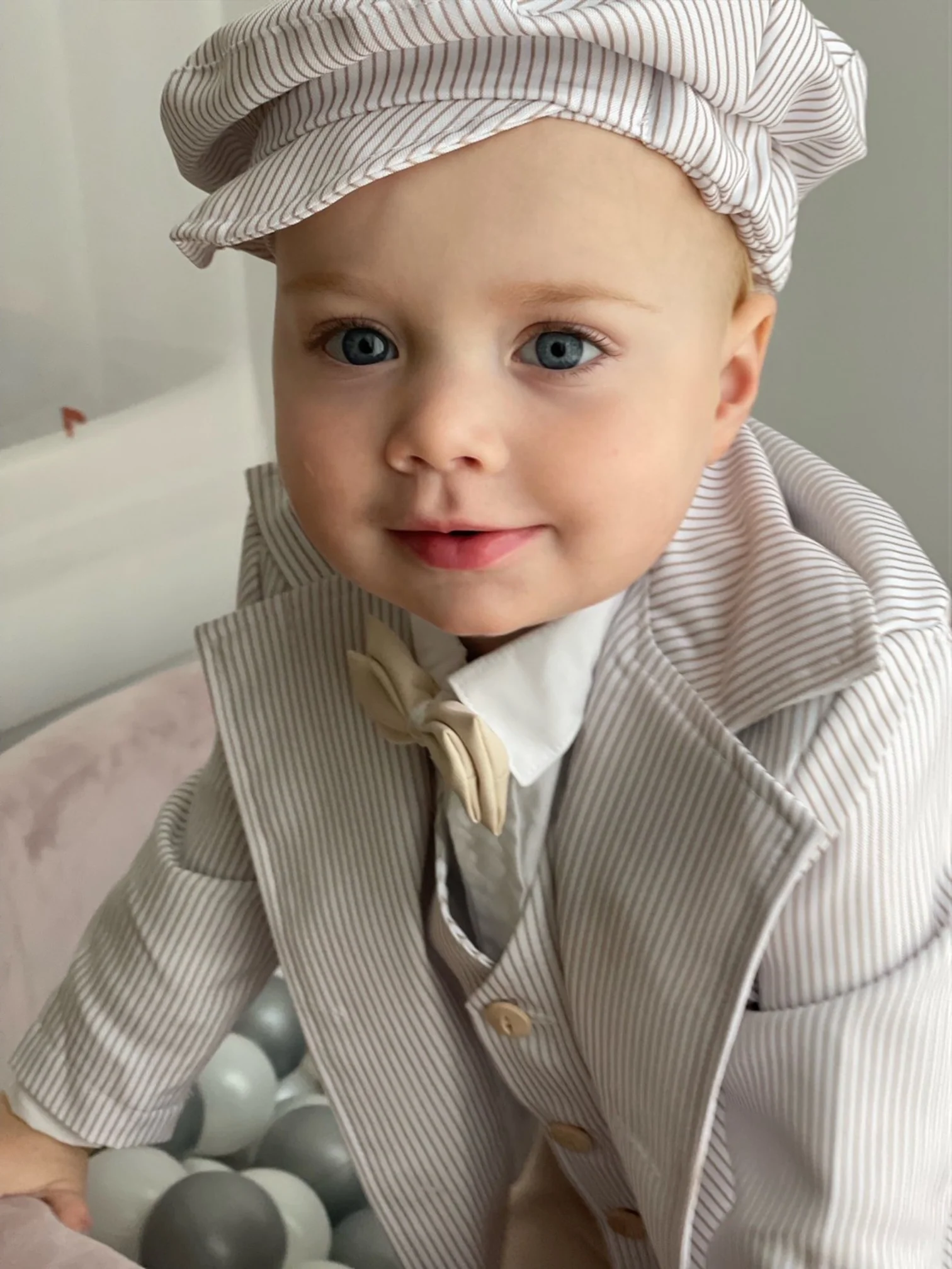 Ce charmant costume très élégant se compose d’un pantalon, d’une chemise en coton, d’un nœud papillon et d’une veste. Il impressionne par la grande coupe. La veste et le pantalon sont en matière douce.