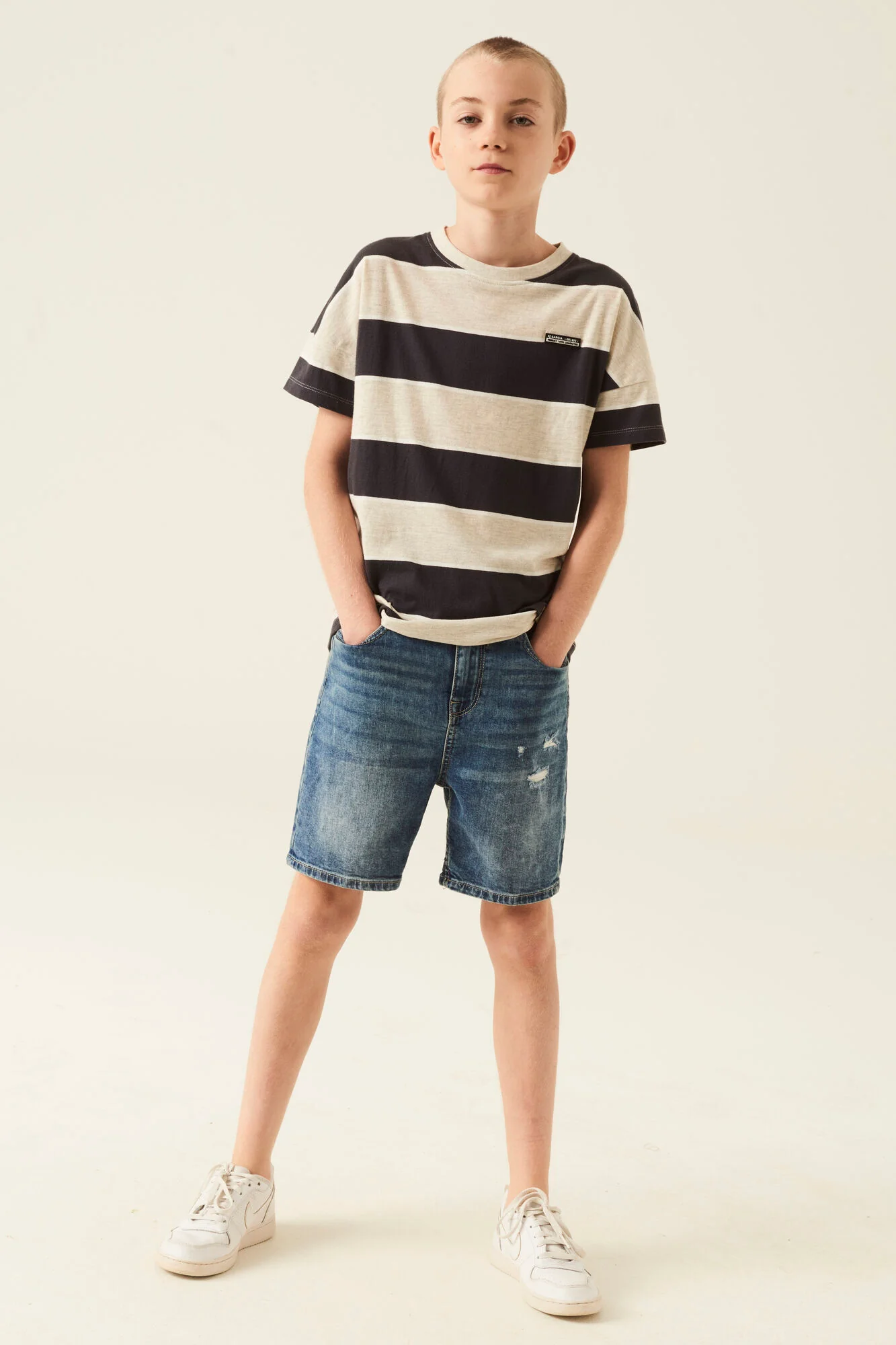 Ce t-shirt rayé est une chemise idéale à porter au quotidien. T-shirt avec un motif à rayures horizontales. Le t-shirt a une encolure ronde, des manches courtes et des épaules tombantes. Cette chemise est composée de 99% coton et 1% viscose.