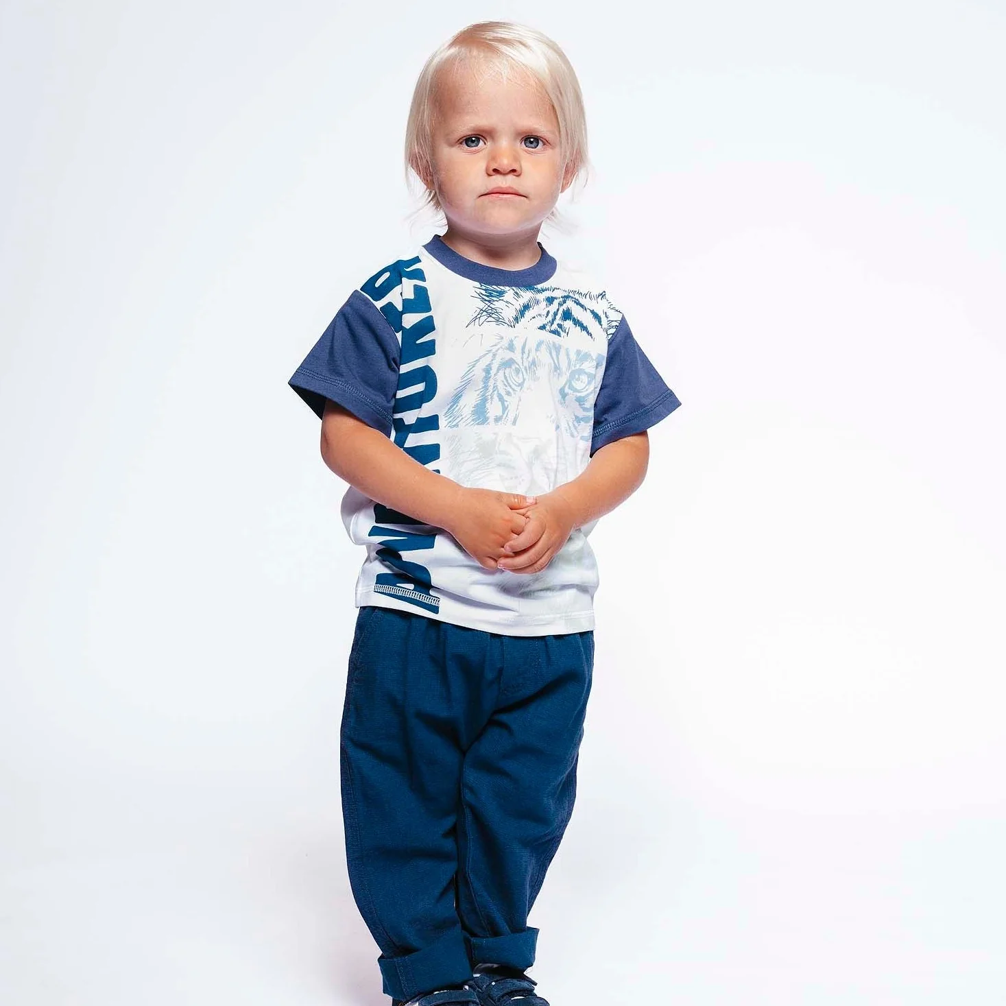 T-shirt Hust & Claire en coton doux avec imprimé tête de lion et mot « Adventurer » sur le ventre. Ce produit est certifié GOTS (Global Organic Textile Standard).