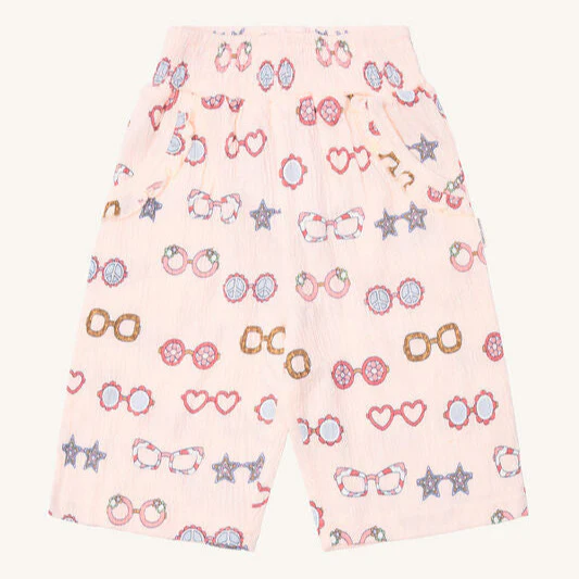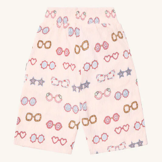 HUST & CLAIRE présente la culotte parfaite pour les filles – en jersey doux avec une structure froissée et un imprimé lunettes de soleil élégant. La ceinture élastique et les détails à volants sur les poches latérales offrent confort et style. Fabriqué à partir de 95% de coton biologique et certifié selon Oeko-tex 100.
