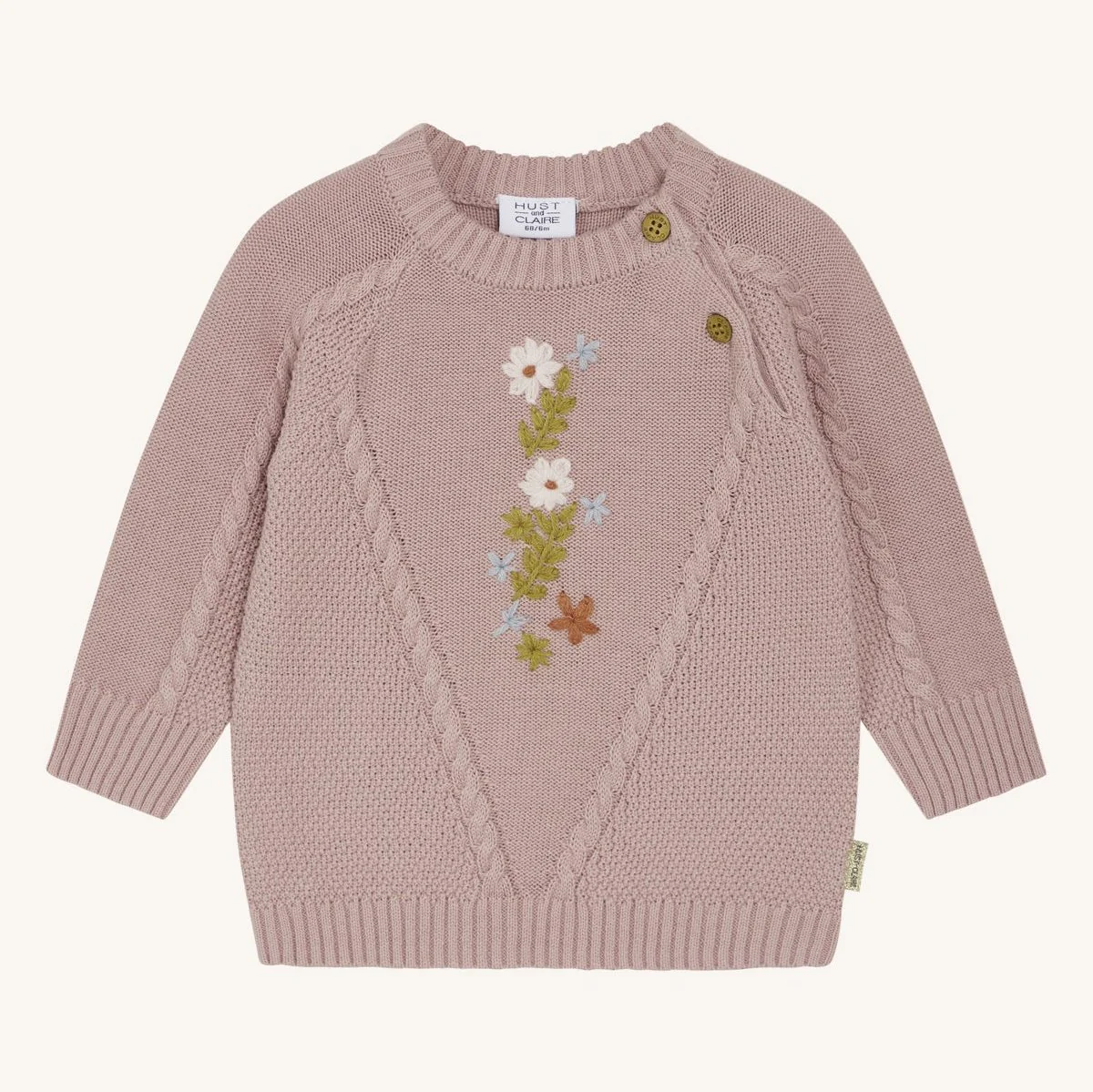 HUST & CLAIRE – Le pull HCPanya est un pull tricoté élégant et structuré en coton doux 100 % biologique. Avec un détail floral brodé sur le devant et une fermeture boutonnée sur la poitrine gauche, ce style est non seulement confortable mais aussi de haute qualité. Parfait pour tous les jours.