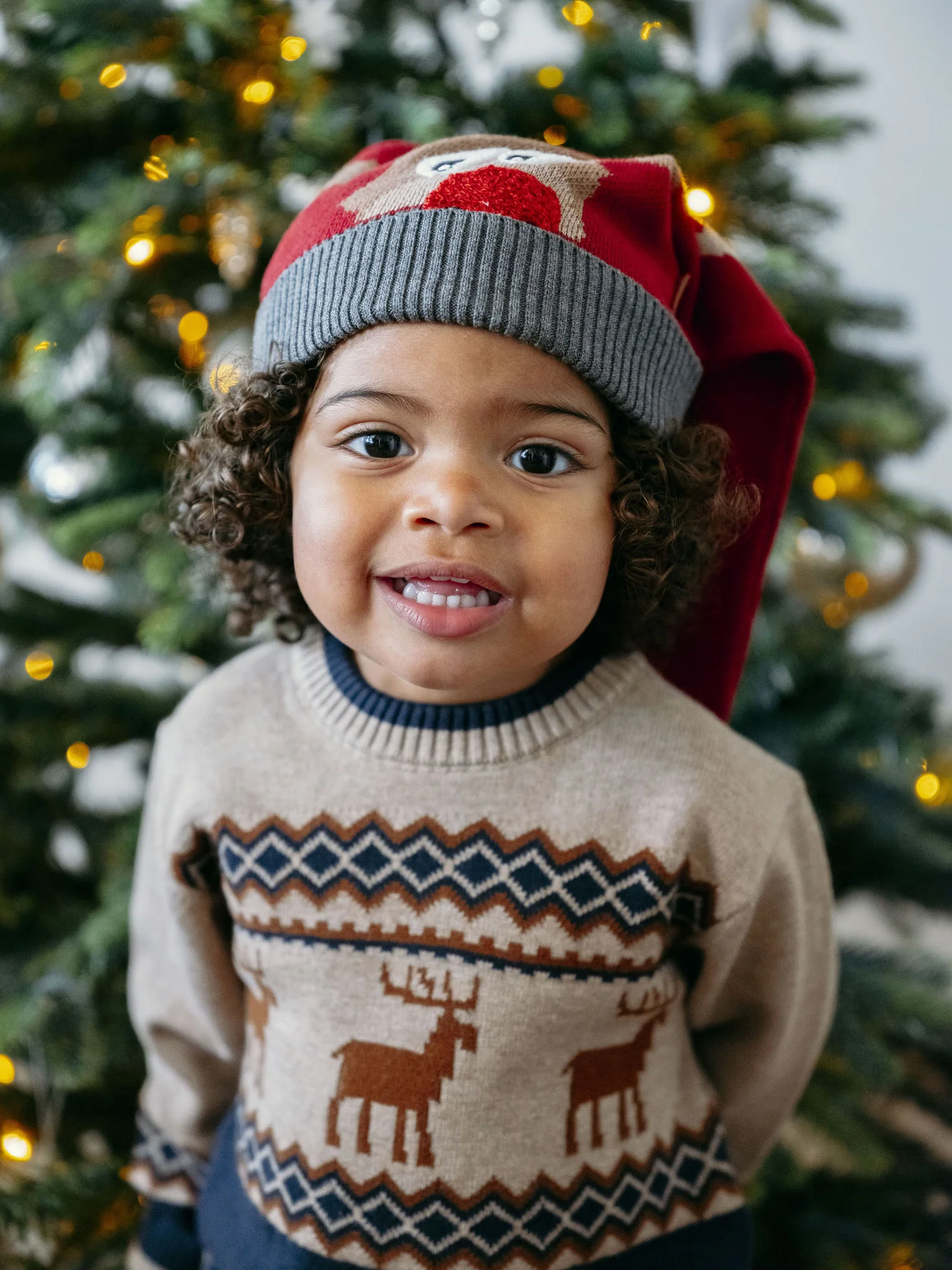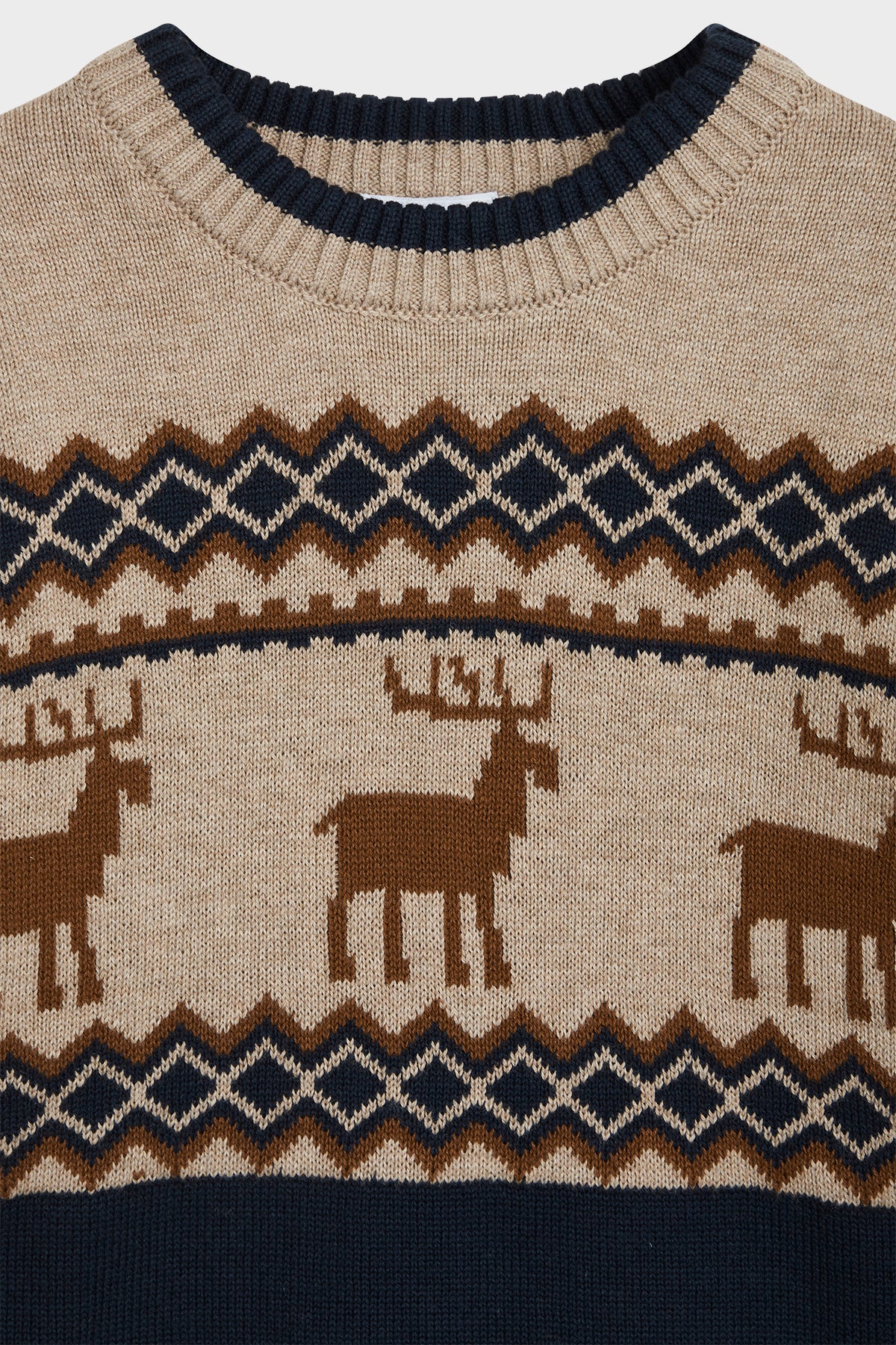 Restez au chaud et respectueux de l’environnement avec ce pull à imprimé renne HUST & CLAIRE. Fabriqué à partir de coton 100 % biologique, il présente un magnifique motif tricoté et des poignets côtelés confortables. Parfait pour les enfants et les parents soucieux de leur style et durables.