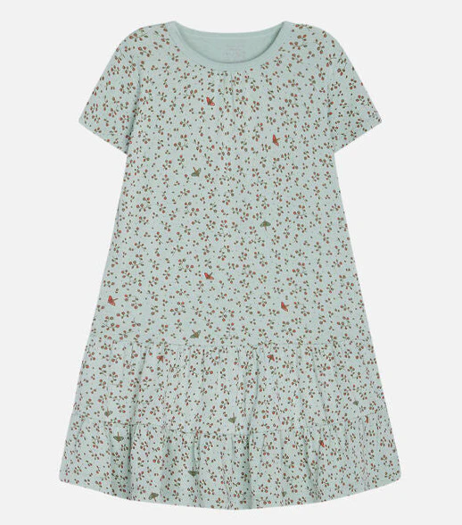 Robe en viscose de bambou fleurie, extensible et très douce avec beaucoup de largeur au bas de la jupe. Avec de légers volants à l’encolure sur le devant. Ce produit est certifié Oeko-Tex 100®.