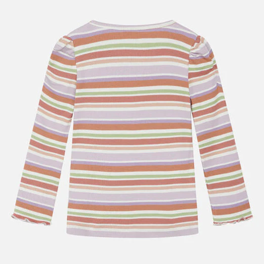 T-shirt en coton doux avec un motif rayé sur le devant. Ce produit est certifié GOTS (Global Organic Textile Standard).