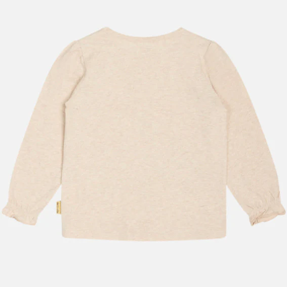 T-shirt à manches longues en coton doux avec imprimé d’un chien portant des chaussures et un chapeau avec des détails scintillants. Avec épaules tombantes et finitions babylock sur les manches. Ce produit est certifié GOTS (Global Organic Textile Standard). Matière: 95% coton, 5% spandex Numéro d’article: 19717 Couleur : 1290 mélange de blé