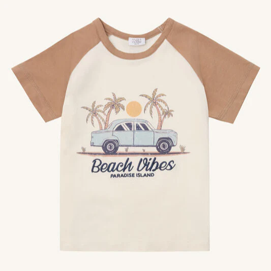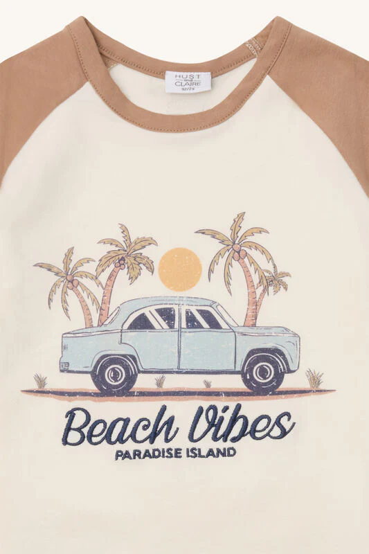 Le t-shirt garçon HUST & CLAIRE HCAnton « Beach Vibes » est confectionné en coton doux et extensible avec un imprimé plage sur le devant. Il est certifié GOTS et offre donc une qualité durable et élevée pour votre enfant. Profitez du confort ultime et du look cool de ce t-shirt à manches courtes.