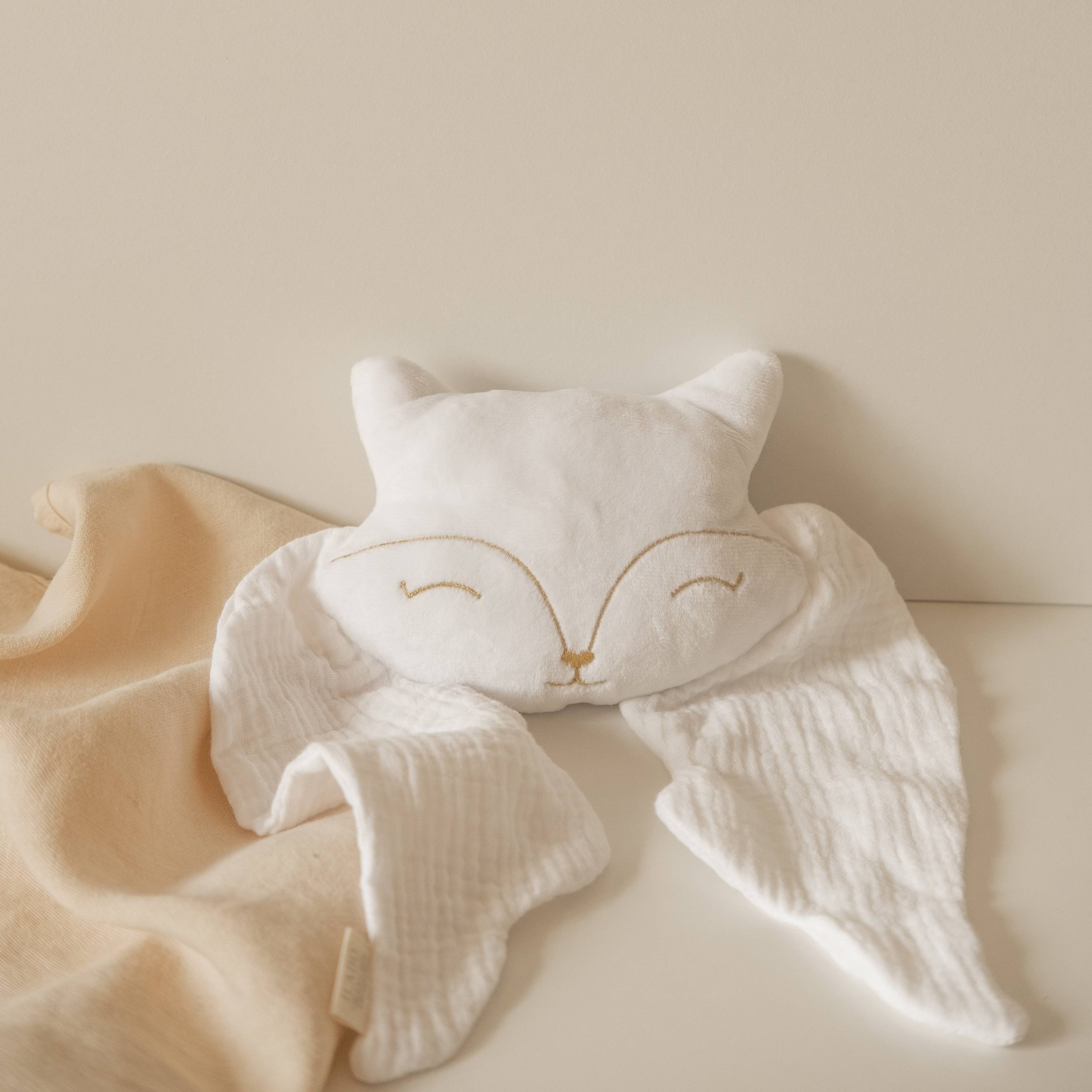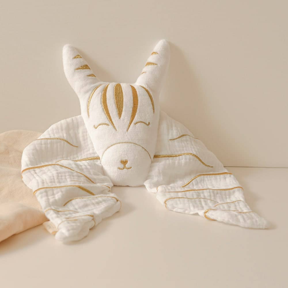 Avec ses traits cousus de fils dorés et son tissu tout doux, il deviendra le petit compagnon préféré de votre bébé.