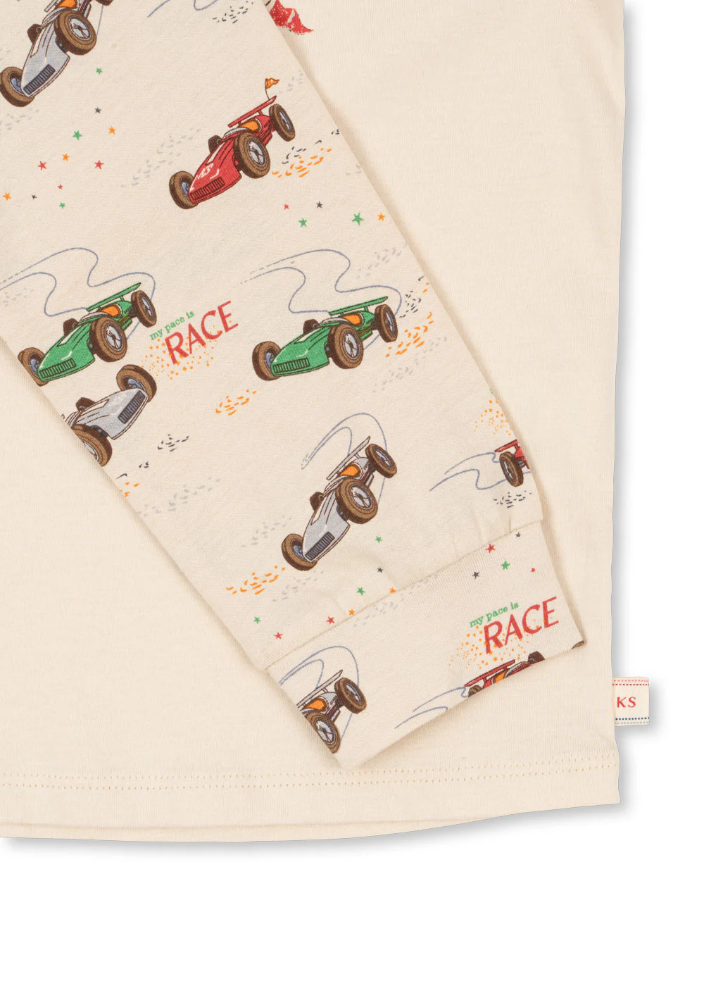Ensemble 2 pièces composé d’un haut imprimé et d’un pantalon confortable. Fabriqué à partir de coton 100% biologique GOTS, biologique, certifié par CU1094701 Numéro d’article : KS101529 Couleur : Grand Prix P35003