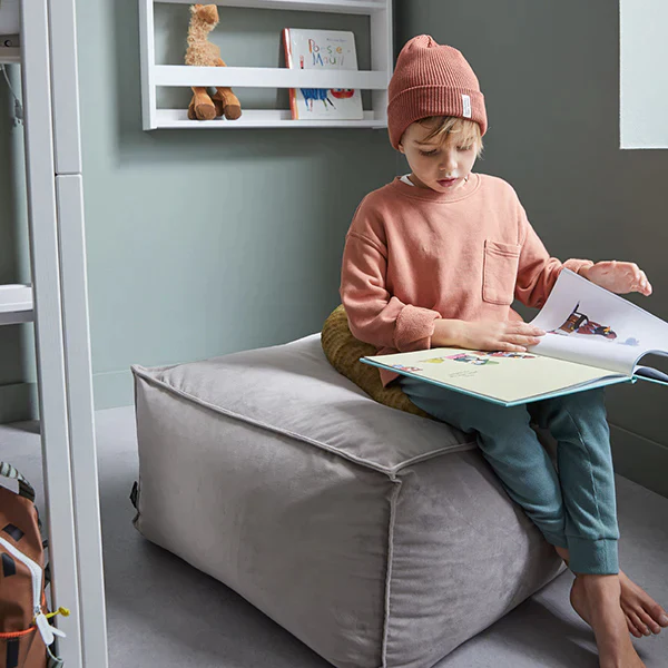 Un grand coussin d’assise pour se détendre, jouer ou lire des livres et très tendance et chic dans le style velours. Couleur: GrisMatière:  100% PES – Remplissage EPS dimensions: 30 cm x 60 x 60 cmInstructions de nettoyage : P Délai de livraison : environ 2-4 semaines