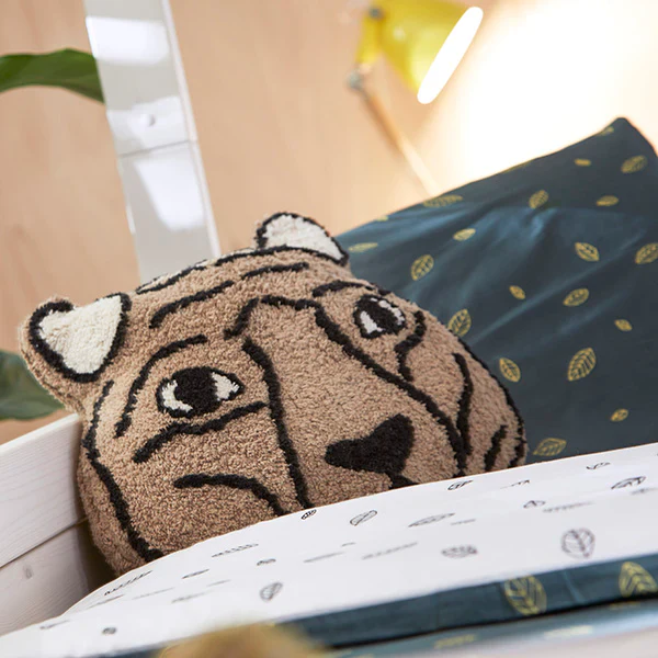 Un beau et moelleux coussin au motif tête de tigre assorti à la collection WILD LIFE.