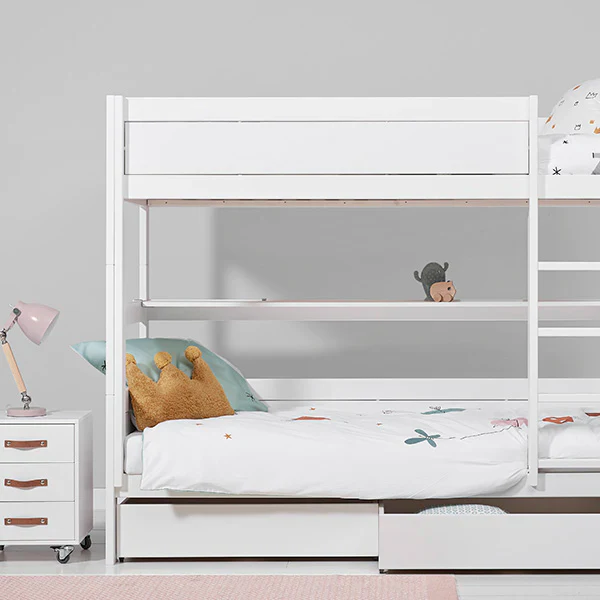 Avec une hauteur totale de 177 cm, le lit superposé classique offre également suffisamment d’espace entre les lits pour pouvoir s’asseoir droit. Une bibliothèque pratique article 252 ou d’autres accessoires pratiques de la gamme LIFETIME peuvent également être suspendus entre le lit. Les aides à l’escalade art. 991 1 sont également disponibles pour l’échelle si l’enfant a besoin de plus d’options de préhension ici.