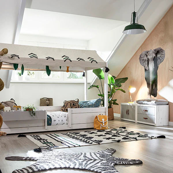 LIFETIME Kidsrooms présente fièrement la collection WILD LIFE conçue avec Lorena Canals. Elle est considérée comme la créatrice du concept de tapis et d’accessoires fonctionnels, lavables, écologiques et faits à la main. Toutes les pièces sont fabriquées avec du coton naturel et des teintures pour garantir durabilité et qualité pour un usage quotidien.