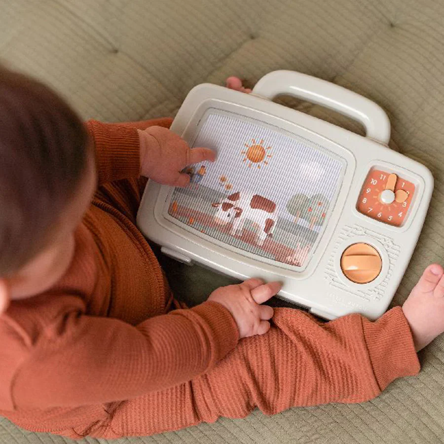 Plongez dans le monde magique de la ferme avec le Little Dutch Musique TV Petite Ferme ! Votre enfant sera enchanté par une mélodie magique et des images en mouvement. Tournez le bouton et regardez les illustrations changer. Ce jouet rétro apporte une touche de charme vintage au présent. Découvrez la ferme de manière ludique avec le Little Dutch Télévision musicale de la collection Little Farm.