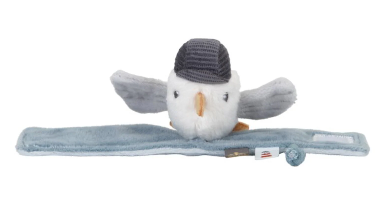 Serrez la main et laissez-vous surprendre ! Votre bébé va adorer ce hochet de poignet. Mettez-le autour du poignet de votre enfant et laissez le plaisir du hochet commencer. La mouette câline au sommet du bracelet n’attend qu’à être déplacée ! Mais il y a plus à découvrir. Les ailes grésillantes, les autocollants et le petit cordon incitent votre enfant à toucher et toucher. Une excellente activité pour un bébé heureux.