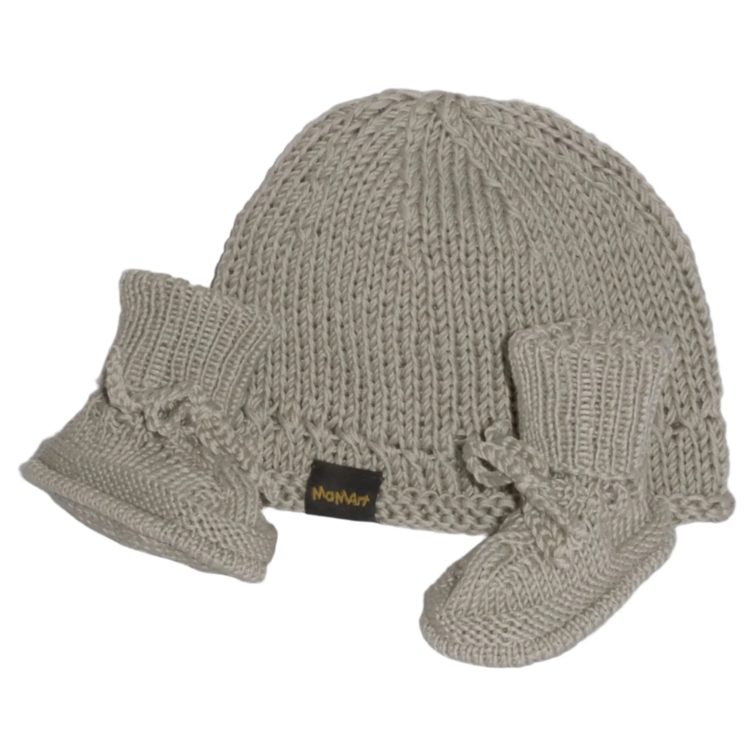 MAMART – coffret cadeau bébé bonnet et pinsons beige clair travail manuel suisse dans une boîte cadeau