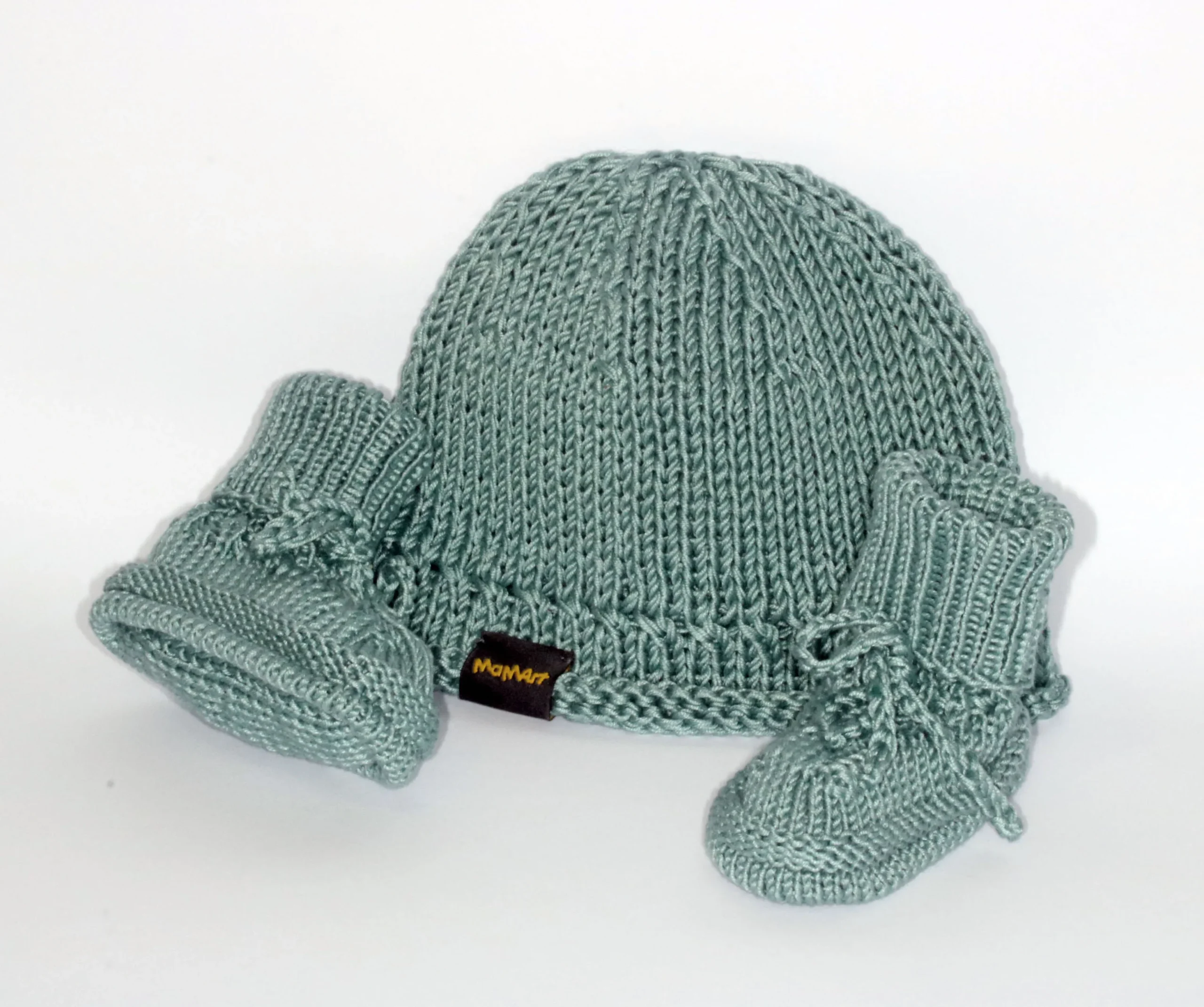 MAMART – Coffret cadeau bébé bonnet et pinsons vert menthe fait main dans une boîte cadeau