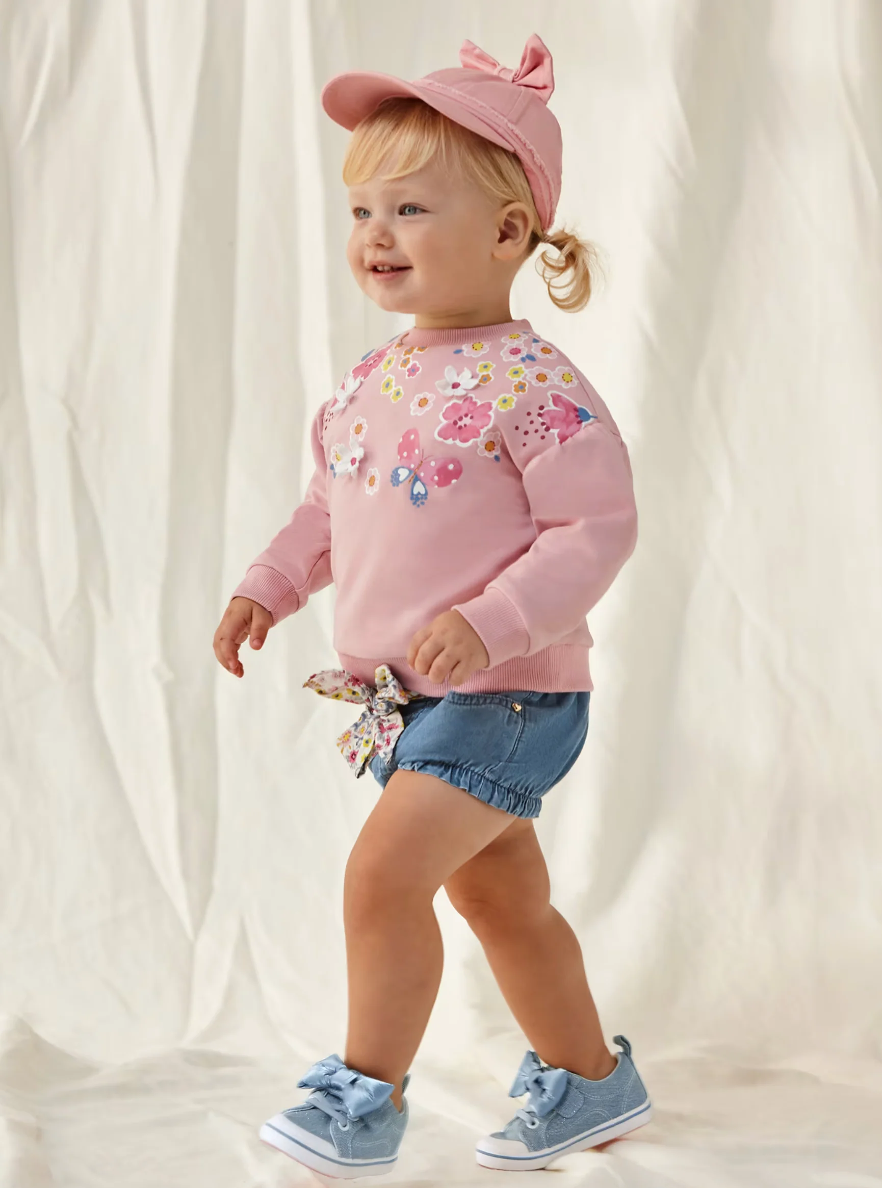 Le short avec ceinture à nœud en Better Cotton pour bébé fille est confortable et de la plus haute qualité. Avec son look jeans tendance, il est parfait pour tous les jours et crée un look tout en douceur. Grâce à la ceinture à nœud, il est aussi particulièrement mignon.