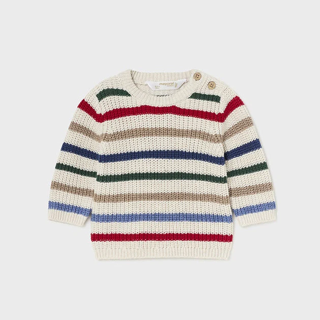 Le pull bébé garçon MAYORAL est parfait pour les parents soucieux de tendances. Avec son design rayé et ses matériaux de haute qualité, il offre non seulement un look tendance, mais aussi un confort optimal pour votre bébé. Offrez à votre tout-petit un look élégant et confortable avec ce pull de haute qualité.