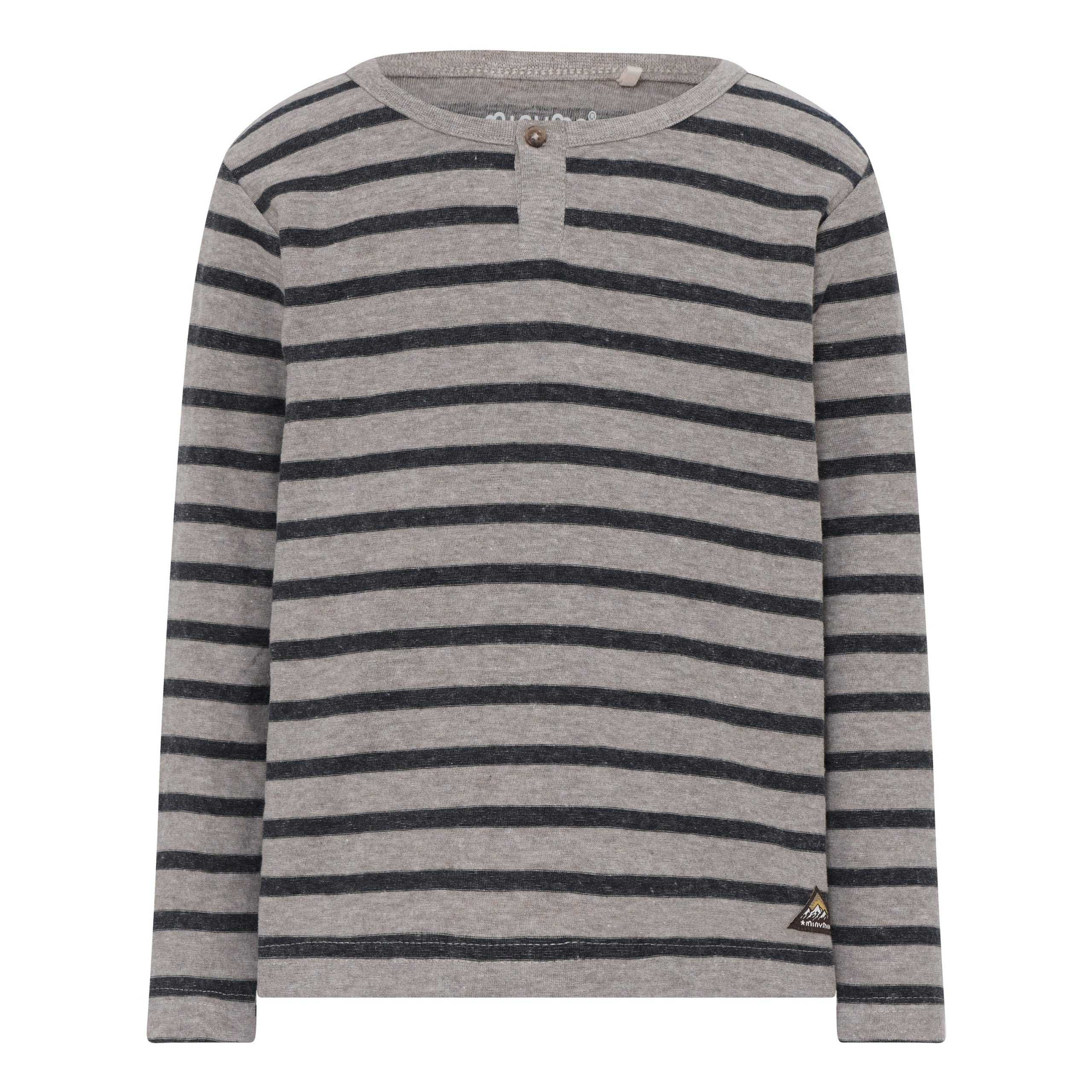 T-shirt rayé à manches longues de la marque MINYMO. Le t-shirt a un bouton à l’avant de l’encolure pour faciliter l’enfilage et le retrait. Fabriqué à partir de coton biologique doux et confortable. Le coton biologique est cultivé sans l’utilisation de produits chimiques nocifs. La culture du coton biologique protège les ressources naturelles et les agriculteurs.