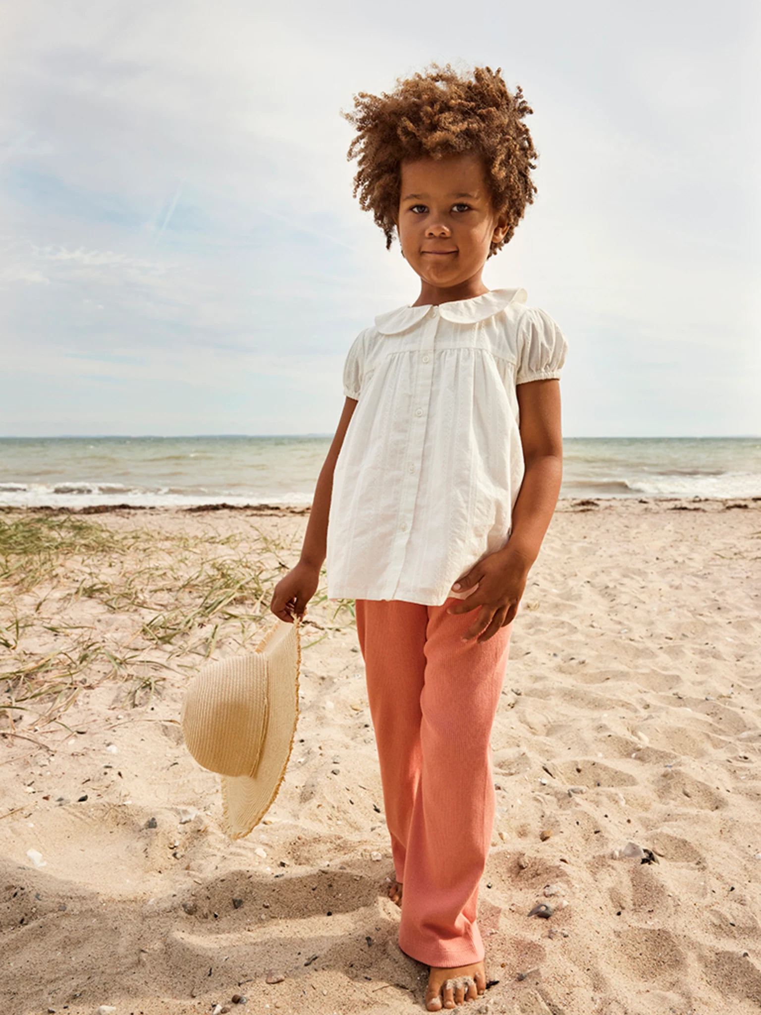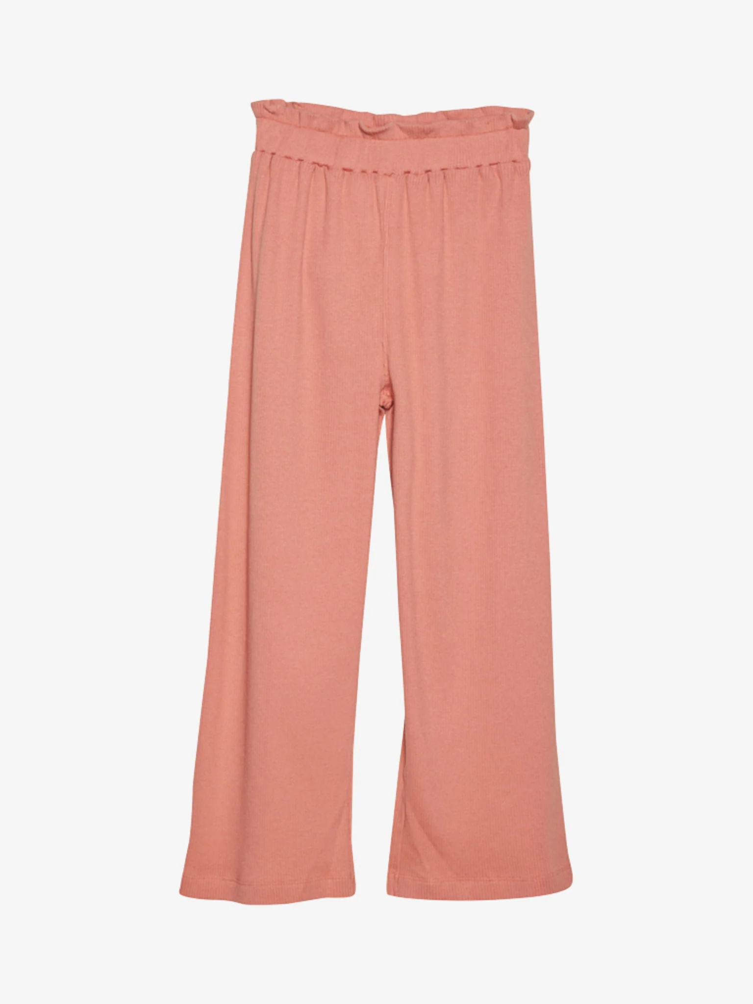 Joli pantalon côtelé de chez Minymo. Le pantalon est fabriqué avec beaucoup de stretch dans les côtes, une taille élastique et une coupe ample autour des chevilles. Les fibres sont certifiées TENCEL ™, fabriquées par LENZING ™.
