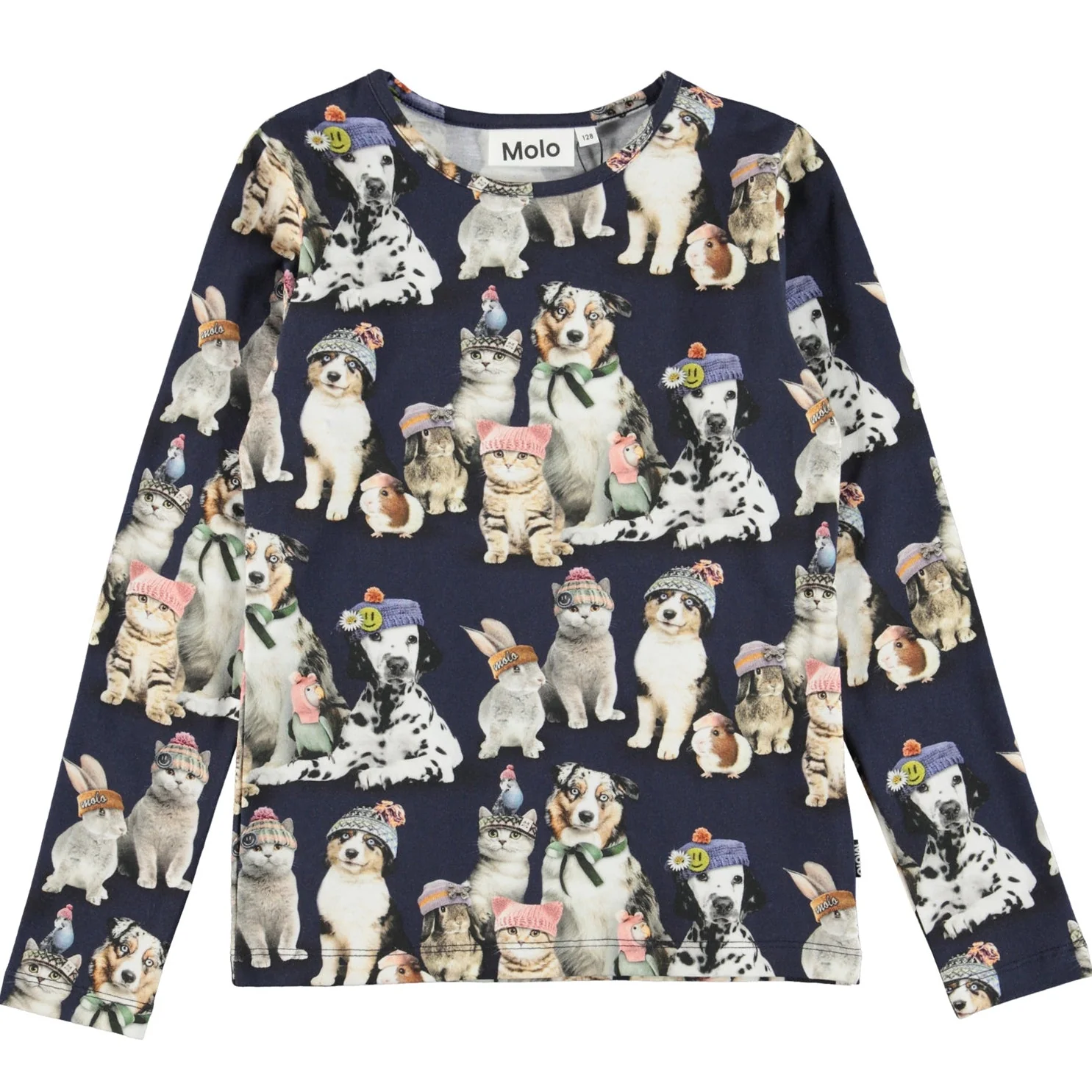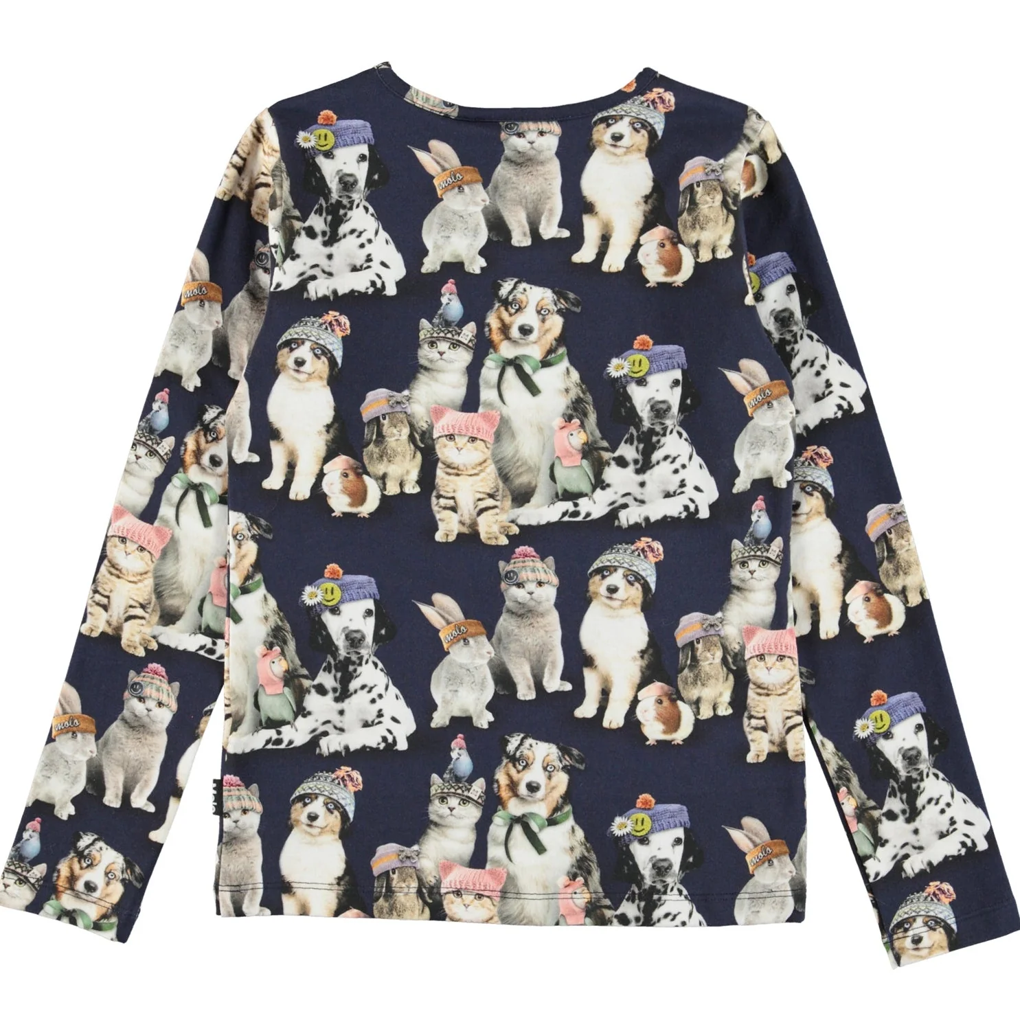 Regine est un haut à manches longues avec des motifs amusants de chien, chat, lapin et hamster. Ce produit Molo est certifié GOTS, ce qui signifie qu’il est fabriqué à partir de matériaux certifiés biologiques et produit selon les normes sociales et environnementales les plus strictes tout au long du processus de fabrication. La certification GOTS garantit également que le produit est exempt de produits chimiques dangereux.