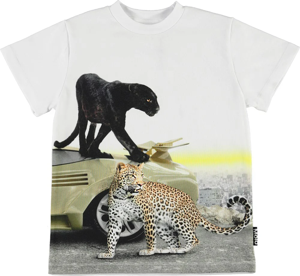 Sur le t-shirt de route « Wild City », la panthère et le léopard ont conquis la grande ville et trouvé une voiture de sport rapide dans laquelle ils voudront peut-être faire la course ou simplement se détendre. Ce produit Molo est certifié GOTS, ce qui signifie que le produit est fabriqué à partir de matériaux certifiés biologiques et selon des exigences sociales et environnementales strictes pour l’ensemble de la chaîne d’approvisionnement. De plus, la certification GOTS garantit que le produit est exempt de produits chimiques nocifs. Ce produit Molo est certifié GOTS par Ecocert Greenlife, certification n°. 197496