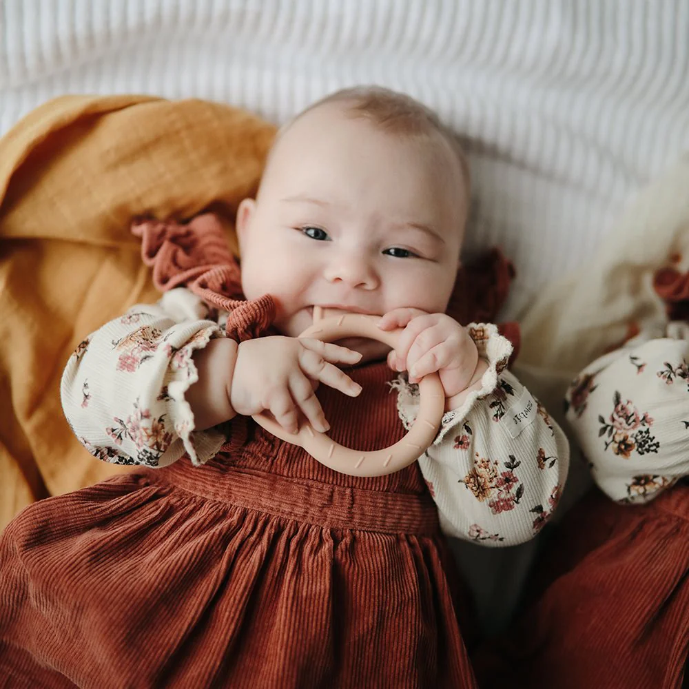 MUSHIE – Anneau de dentition Bracelet Fleur Pack de 3 Tourterelle / Acier / Pierre