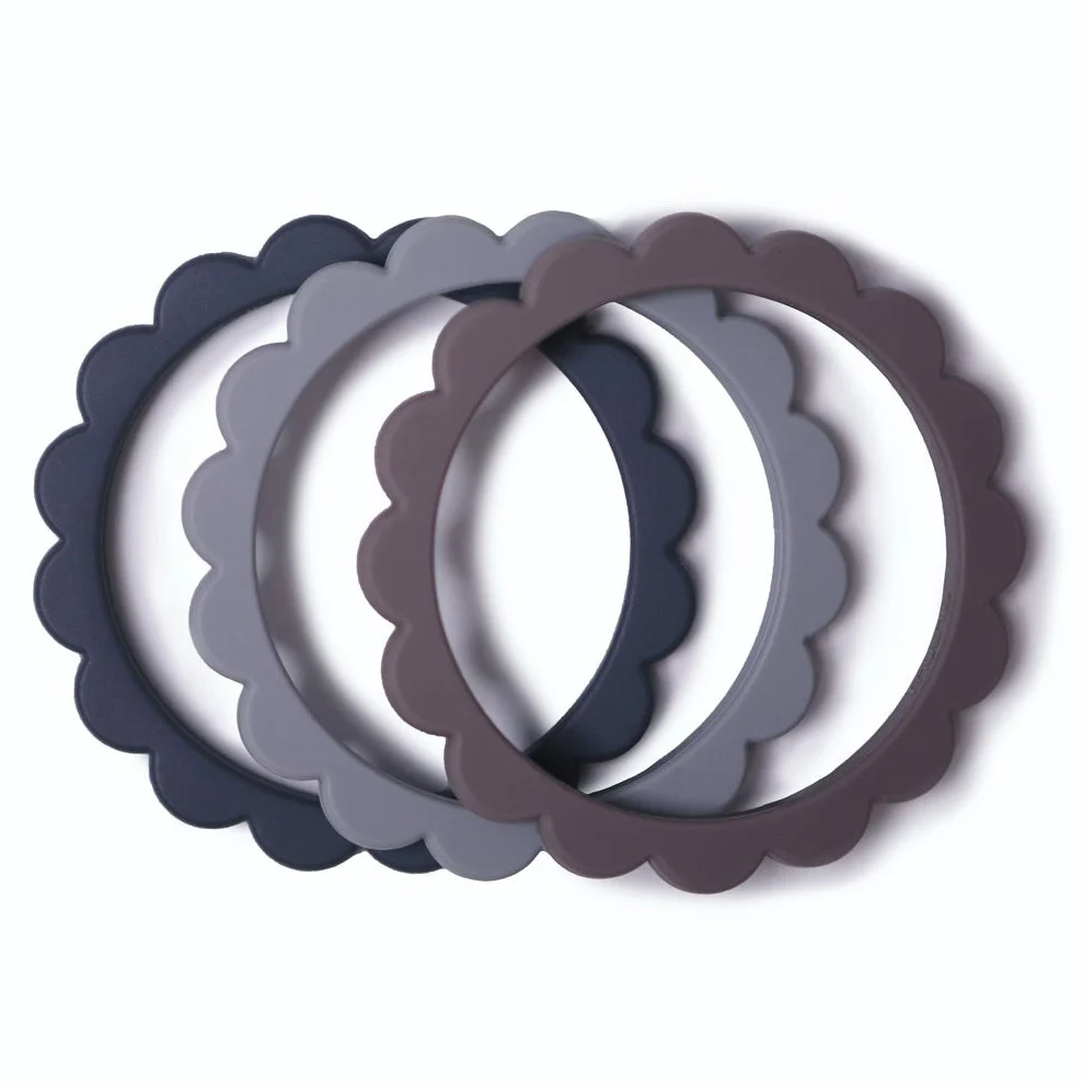 MUSHIE – Anneau de dentition Bracelet Fleur Pack de 3 Tourterelle / Acier / Pierre