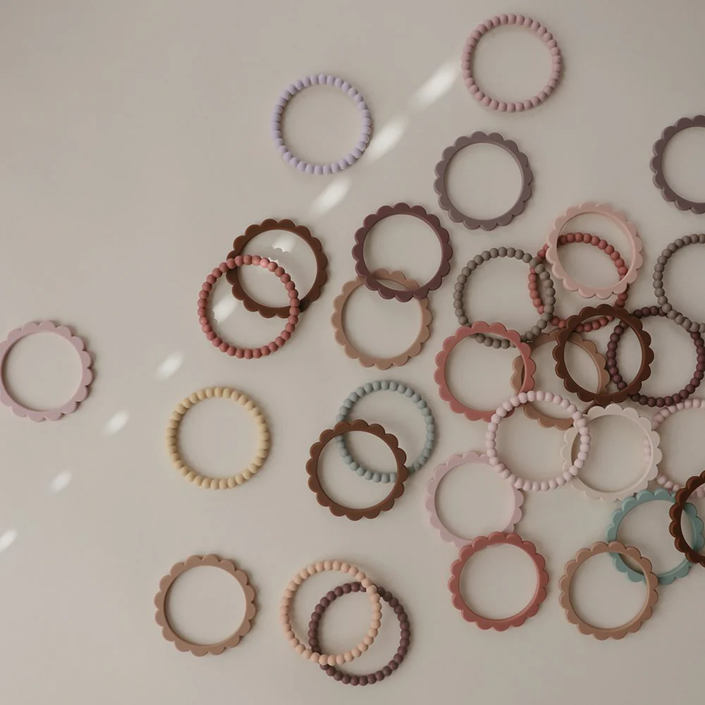 Apaisez les gencives irritées de votre bébé avec nos bracelets anneaux de dentition. Fabriqués à partir de silicone 100 % non toxique de qualité alimentaire, ils sont sans danger pour votre bébé – et leur design fantaisiste, ainsi que leurs couleurs sophistiquées, en font un accessoire élégant. Numéro d’article 2570322