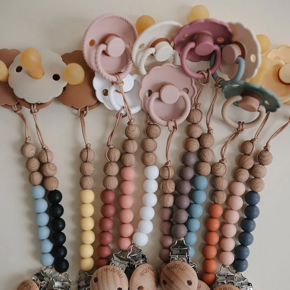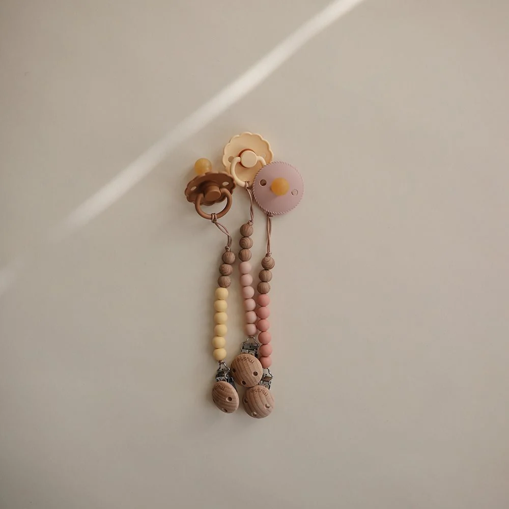 MUSHIE – Attache-tétine Baby Nuggi avec chaîne et attache-tétine Eva Thym séché