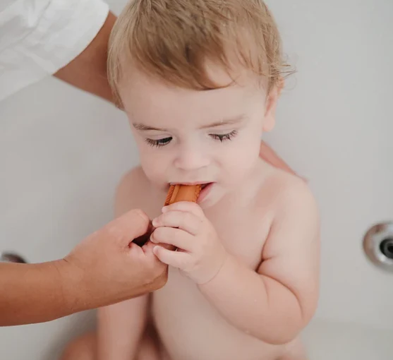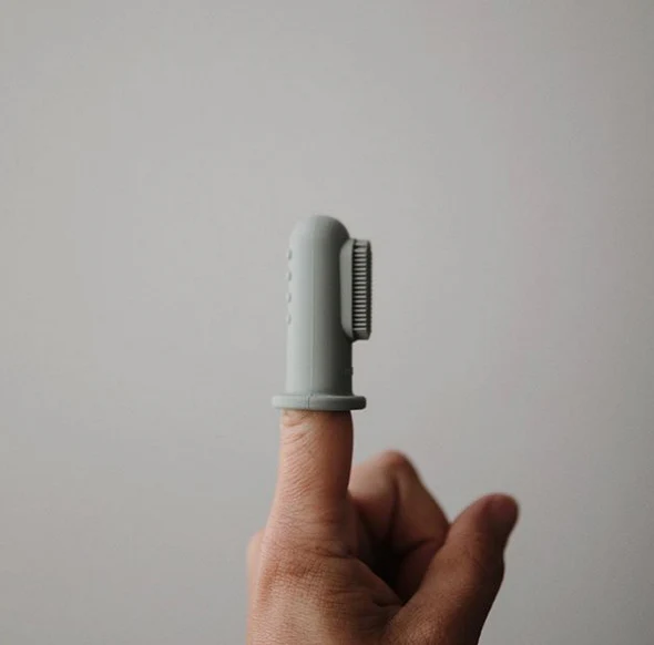 MUSHIE – Brosse à Dents Doigt en Silicone Bleu Cambridge / Sable Changeant Lot de 2