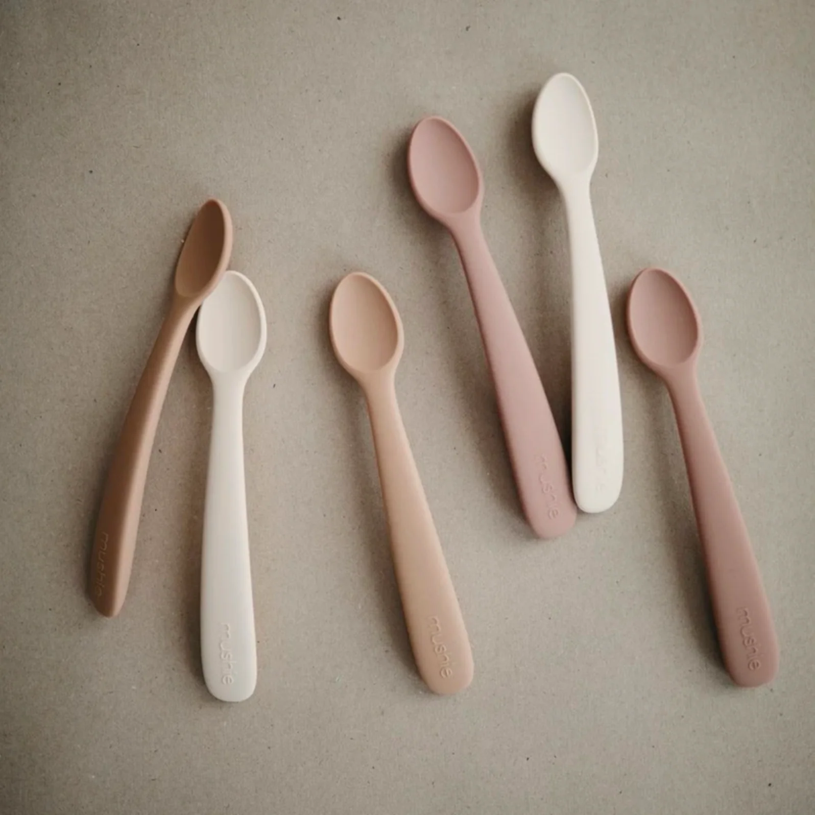 Mushie – Ensemble de cuillères pour bébé Stone / Cloudy Mauve