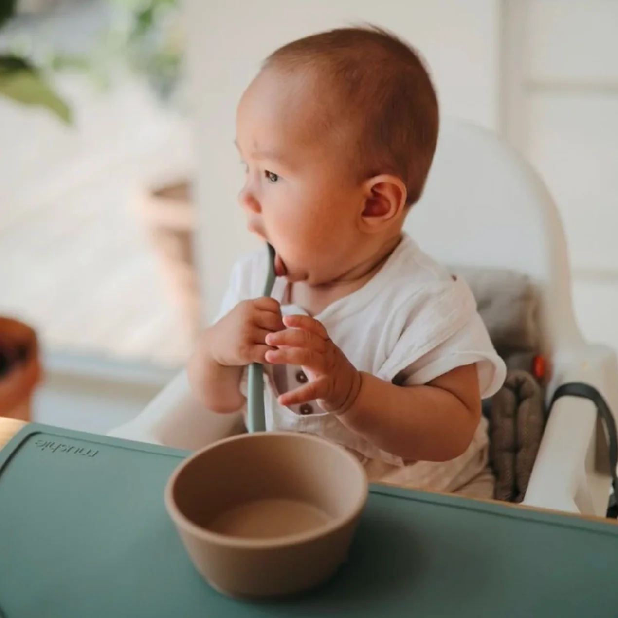 Cuillère bébé en silicone pour les premiers repas de bouillie.