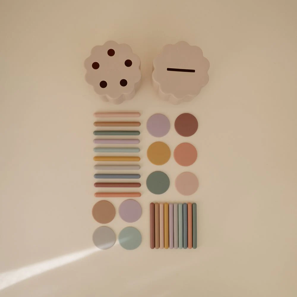 Laissez les enfants découvrir le tri et l’association avec le coffret de tri de pièces et de tubes Mushie !
