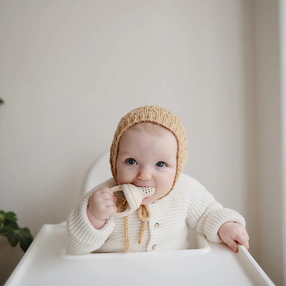 Il fait découvrir aux enfants de nouvelles saveurs et textures en toute sécurité tout en leur apprenant à manger de manière autonome. La conception en deux parties du récipient de conservation des aliments est facile à nettoyer et s’adapte bien aux mains des petits enfants. Les petits trous libèrent la bonne quantité de friandises fraîches ou surgelées du récipient. Le récipient de conservation des aliments est idéal pour les déplacements ou simplement pour grignoter à la maison.