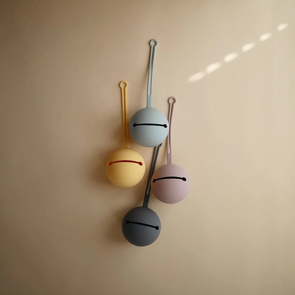 Housse de sucette pratique en silicone sans BPA. L’étui peut contenir jusqu’à 3 tétines et est équipé d’une sangle solide. Cela permet à la housse de sucette Mushie d’être attachée n’importe où, comme sur une poussette, un sac et bien plus encore. Ainsi, la tétine est toujours à portée de main.