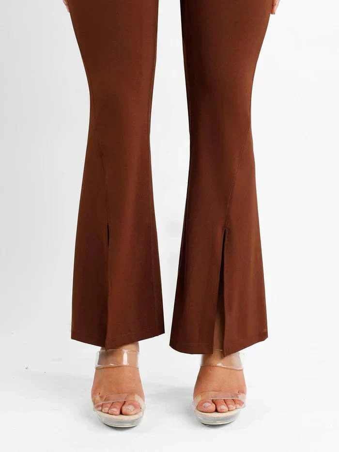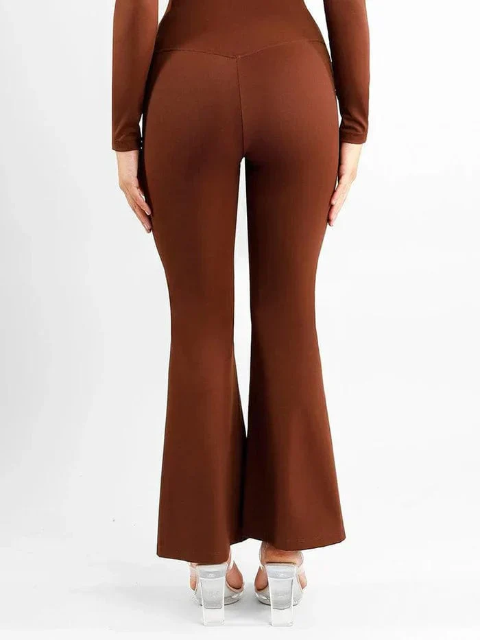 Pantalons De Shapewear À Taille Haute Évasée Avec Contrôle Du Ventre Et Ourlet Fendu